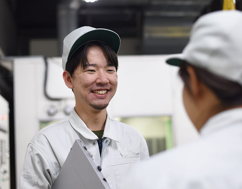 改善業務では、生産ラインの担当者とコミュニケーションを密にして課題や要望などを解決するための案出しを行い、改善されるまでPDCAサイクルを回しています。一方、新製品を試作をするために関連部署との打ち合わせや設備の条件出しも行い、開発部門からの要望に応えられるよう試行錯誤しています。