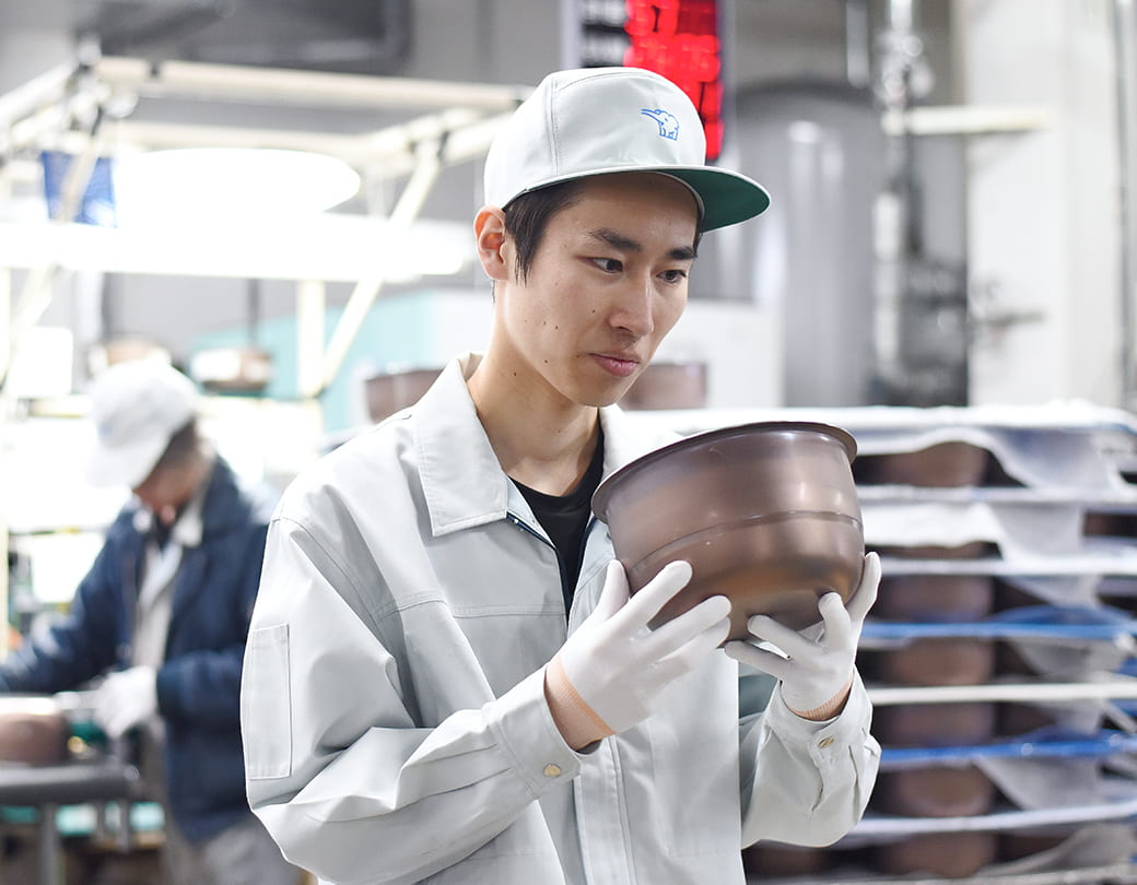 炊飯ジャーの内釜の内面を塗装する工程のライン長をしています。
